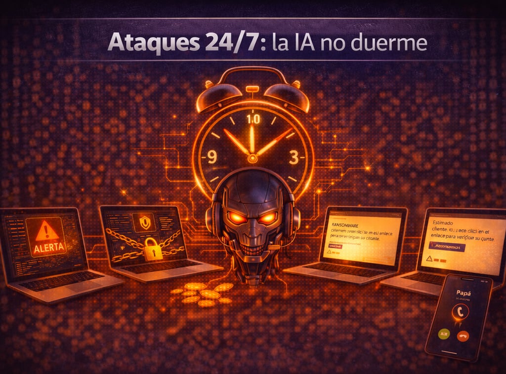 El verdadero cambio que introduce la inteligencia artificial en el cibercrimen no es solo técnico. Es estratégico. Convierte el ataque en un proceso continuo, medible y optimizable. Mientras tú duermes, los sistemas siguen probando. Mientras trabajas, siguen analizando. Mientras descansas el fin de semana, siguen aprendiendo.