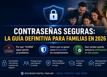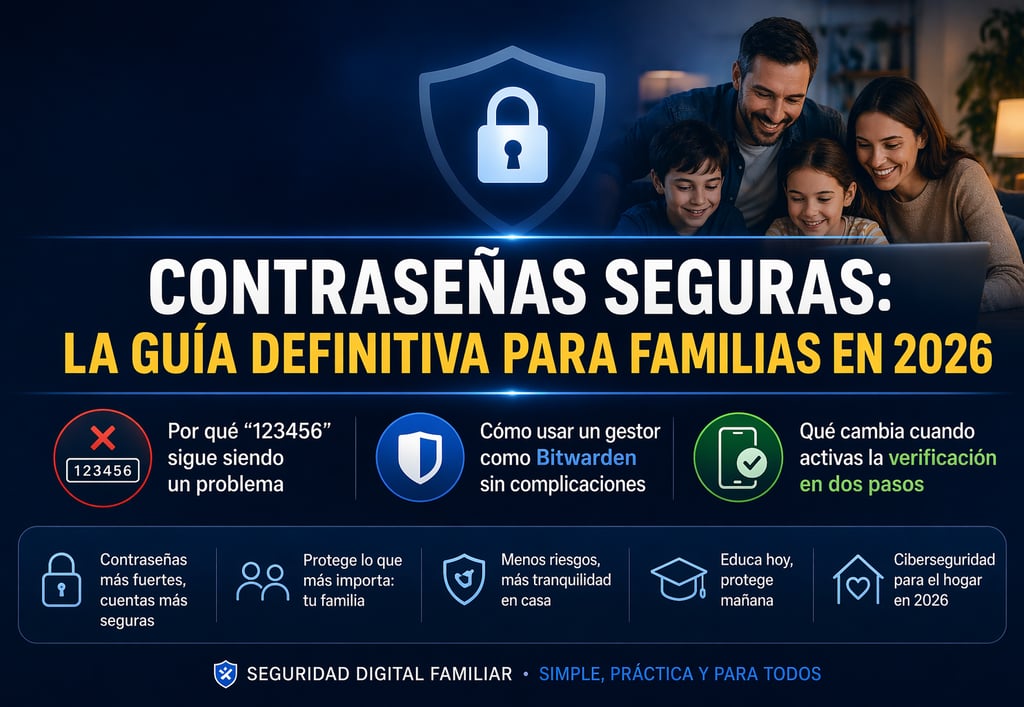 Etiquetas: contraseñas seguras familias, Bitwarden familia, verificación en dos pasos, gestor de contraseñas, seguridad digital hogar, proteger cuentas familia, ciberseguridad doméstica 2026, educación digital familia