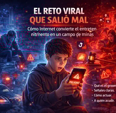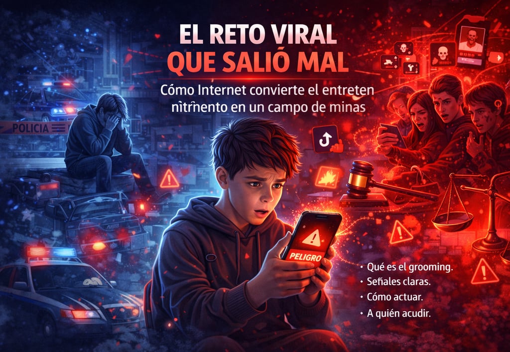 ETIQUETAS: retos virales peligros, riesgos retos TikTok, viral challenge consecuencias legales, ingeniería social menores, presión social digital, seguridad digital familias, cultura digital 2026, responsabilidad individual internet
