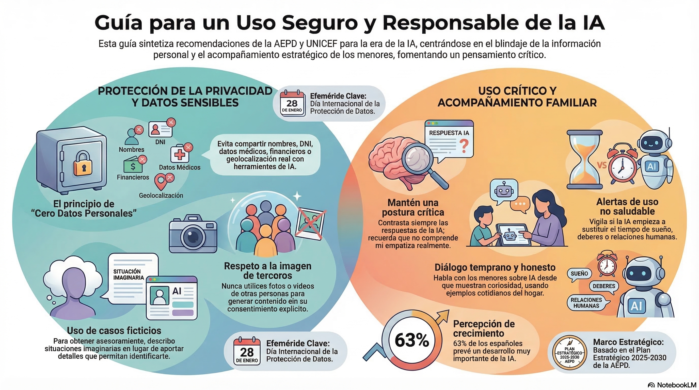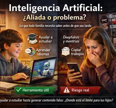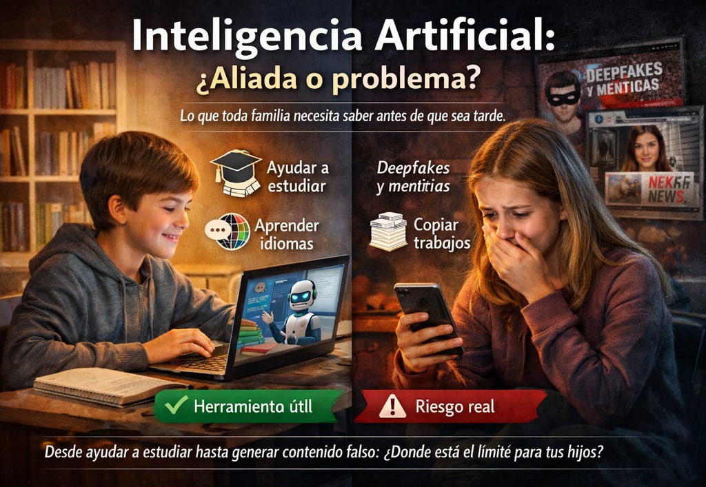ETIQUETAS: inteligencia artificial niños, IA educación familias, riesgos IA menores, copiar trabajos con IA, deepfakes niños, uso responsable IA, IA para estudiar, seguridad digital familias 2026