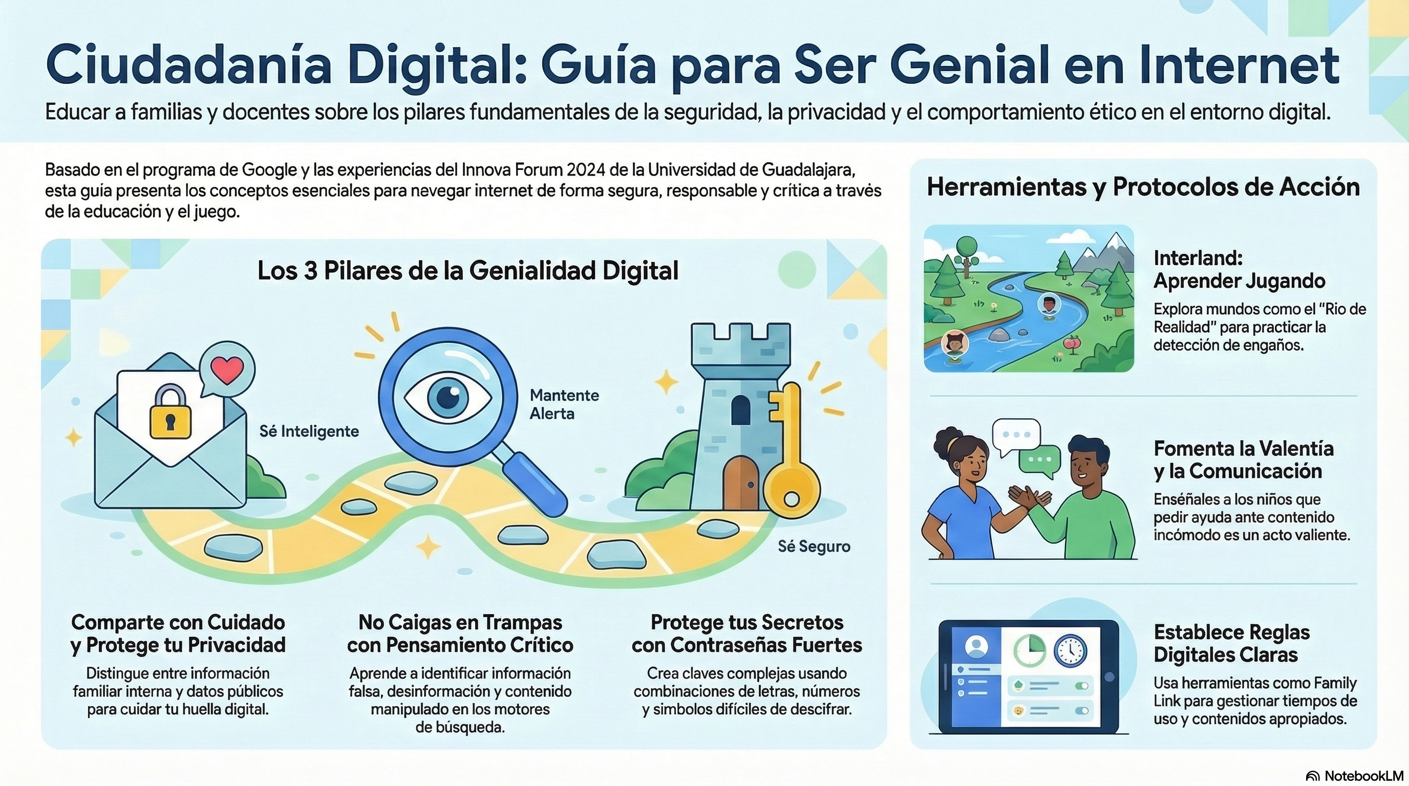 Recurso adicional: Be Internet Awesome (beinternetawesome.withgoogle.com) incluye también vídeos, libros para colorear, planes de lección para docentes y una guía familiar descargable. Todo gratuito y disponible en varios idiomas.