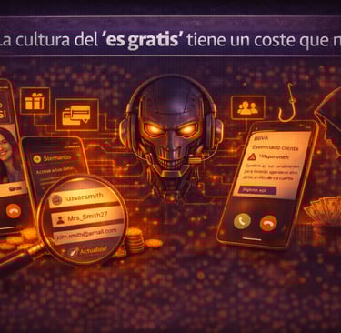 Cuando aceptamos el “gratis” sin reflexión, estamos contribuyendo a la construcción de un perfil cada vez más detallado sobre nosotros. Ese perfil puede utilizarse con fines legítimos —publicidad, personalización— pero también puede convertirse en materia prima para ataques altamente dirigidos.