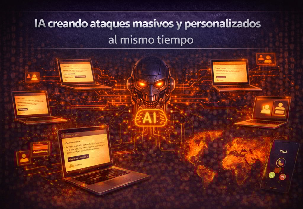 La inteligencia artificial ha cambiado una regla básica del cibercrimen: ya no hay que elegir entre atacar a muchos o atacar bien. Hoy se puede hacer ambas cosas a la vez. Ataques masivos, pero personalizados. Automatizados, pero creíbles. Escalables, pero humanos.